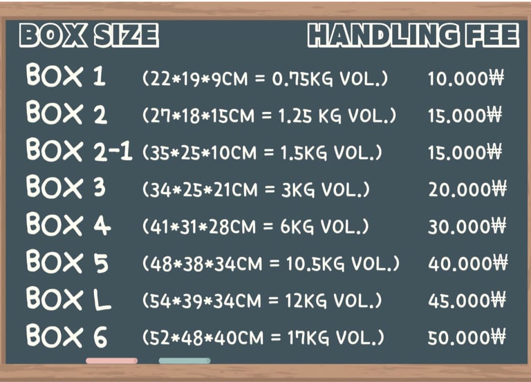 The handling fee is charged according to that final box size, ensuring fair and transparent pricing for every shipment.
